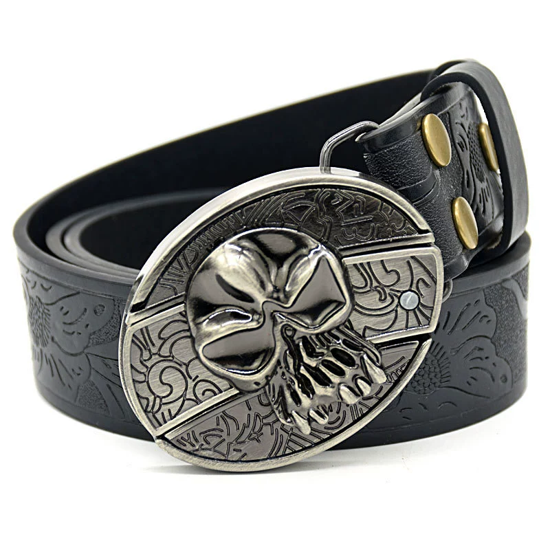 Belt Buckle Knife-Skull Buckle Embossed Black