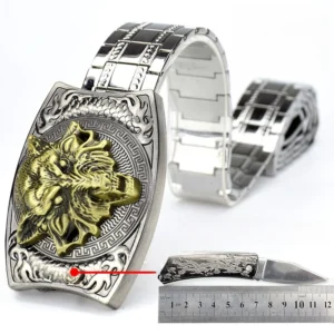 New stainless steel wolf head belt buckle knifeBelt length: 100cm Folding knife length: 12cm