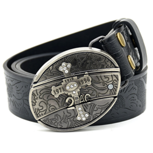 Belt Buckle Knife-Large Cross Knife Buckle Embossed Black